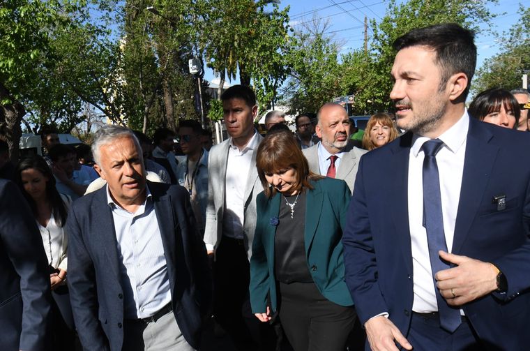 Lo hizo acompañada del ministro de Defensa de la Nación y primer candidato a diputado por el frente oficialista, Luis Petri. Ambos junto al gobernador Alfredo Cornejo y otros funcionarios locales como la vicegobernadora Hebe Casado y también otros candidatos por la lista de la alianza.