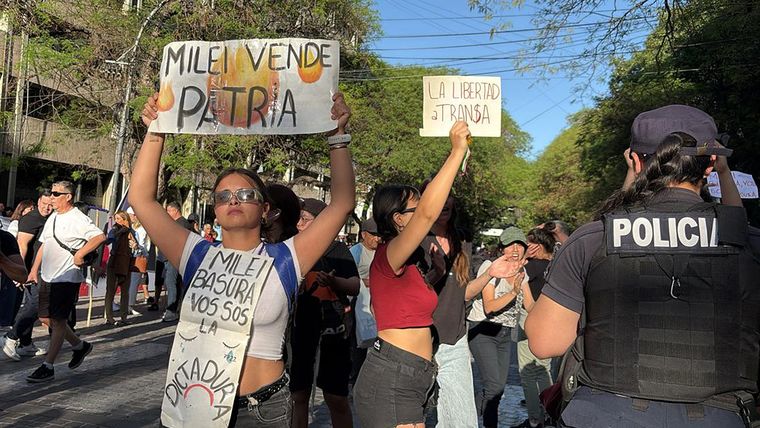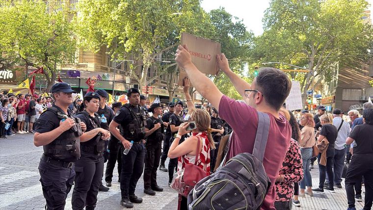 El presidente Javier Milei visitó el corazón de la Ciudad de Mendoza. El microcentro transformó su dinámica diaria. La presencia del mandatario en la provincia generó un escenario de fuerte contraste social. En veredas opuestas, literalmente, se encontraron los militantes liberales y grupos de personas que se manifiestaron en contra del mandatario.
