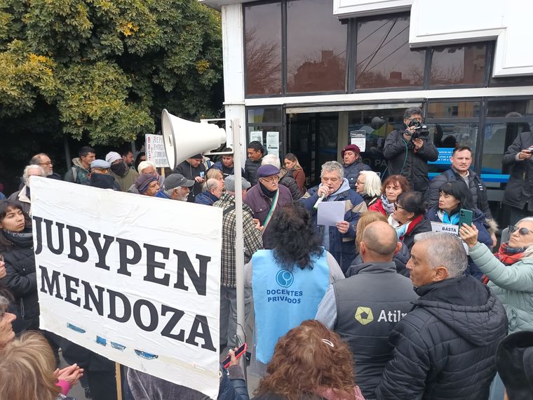 La tradicional ronda de jubilados que se realiza todos los miércoles en la Plaza San Martín se trasladó este mediodía a la sede de la delegación regional del PAMI, ubicada en calle Belgrano del centro mendocino.