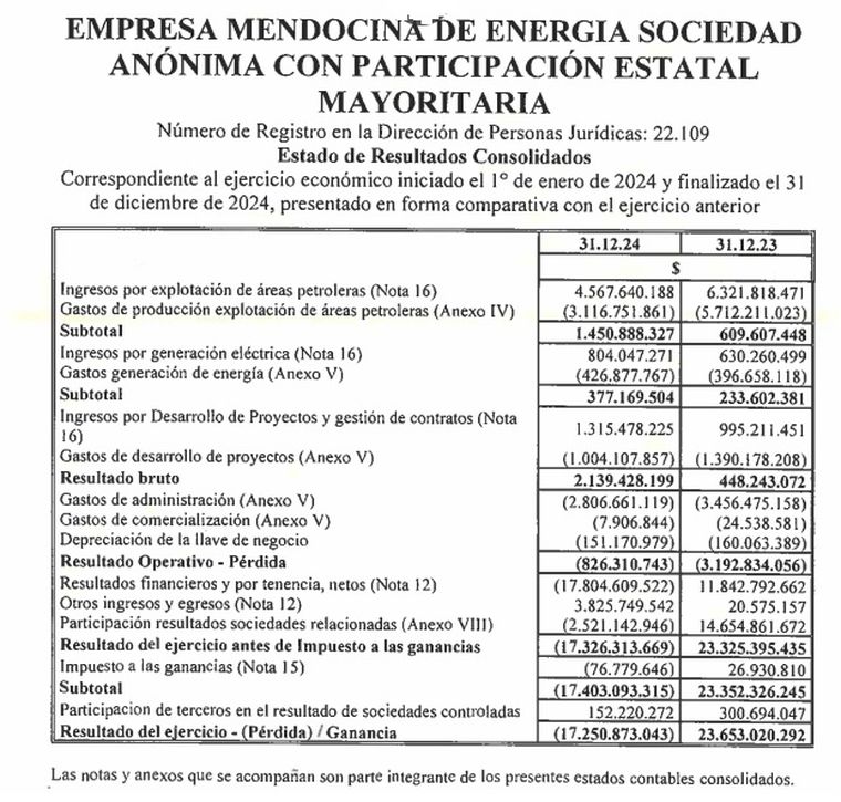 Más rara es la contabilidad de otra de las empresas estatales de Energía, como EMESA. Esa empresa también arrojó pérdidas en el balance 2024 (que fue aprobado en septiembre de este año). Pero los detalles son más interesantes que los números gruesos. Entre los malos negocios de esa empresa, están los contratos rescindidos con CEOSA por sus incumplimientos. EMESA pagó los montos en dólares como costo por rescindir los contratos (que debía abonar su socio) para evitar sanciones mayores de parte de CAMMESA. En concreto la empresa estatal de energía pagó 385 mil dólares por el proyecto no cumplido PS Luján de Cuyo, de Walta energía (sociedad entre CEOSA y EMESA), 372.750 dólares por el incumplimiento del proyecto Anchoris, de la sociedad Allen Energía y 308.000 dólares por el proyecto Lavalle, de Kutek Energía. Una curiosidad: esa trama de empresas y vinculaciones fueron lideradas por Emilio Guiñazú, el cerebro de la estrategia energética de los gobiernos de Alfredo Cornejo y Rodolfo Suarez. Además, la empresa estatal pagó 875 mil dólares por la rescisión del contrato del proyecto El Sosneado.