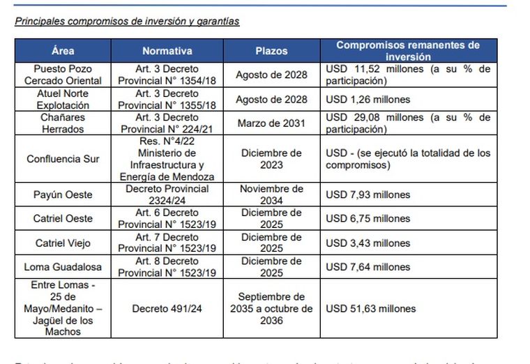 En Mendoza tiene la concesión de dos áreas emblemáticas de la cuenca cuyana como son Chañares Herrados y Puesto Pozo Cercado, cuyas concesiones tienen plazo hasta el año 2043 y 2046. En el Sur, tiene a cargo el área Atuel Norte y el año pasado accedieron a la concesión de Confluencia Sur y Payún Oeste. En la Patagonia la empresa adquirió activos de Vista, a la vera de la ruta 151. En principio, desde la empresa aseguran que mantienen la operación con normalidad. “La compañía continúa operando con normalidad en todas sus concesiones y mantiene en curso el plan de actividades previstas para 2025. El proceso de reordenamiento financiero se está construyendo para alcanzar un acuerdo sustentable y así dar en el mediano y largo plazo sostenibilidad a nuestras operaciones y fuentes de trabajo directas e indirectas”, explicaron allegados a la negociación.