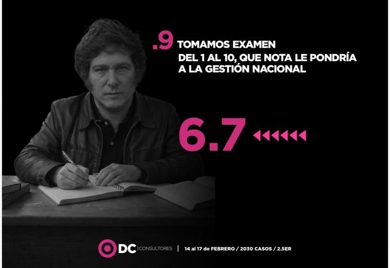 En este punto de le encuesta es donde el gobierno nacional debe mirar con mayor atención la luz roja que se encendió. Si bien la sociedad apoya el rubo tomado por el presidente Javier Milei en el 2023, al tener que calificarlo el puntaje obtenido no llega al 7