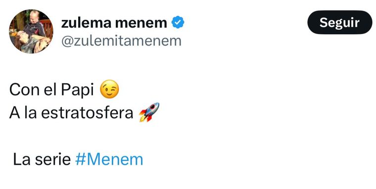 “Con el Papi A la estratosfera ”, escribió Zulemita, junto a una imagen en la que se la ve sonriente con el actor Leonardo Sbaraglia, caracterizado como su padre.
