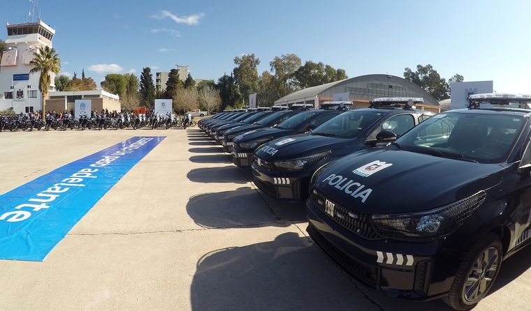 En un acto en la base Cóndor, se anunció la incorporación de 344 nuevos policías y la entrega de 226 vehículos -entre autos, motos y camionetas-, 680 armas, 3.000 chalecos antibalas. También se desplegó parte del equipamiento tecnológico que se ha ido sumando para las tareas de patrullaje que realizan las fuerzas de seguridad.