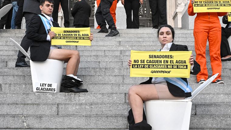 En paralelo, la jornada comenzó con la detención de doce activistas de Greenpeace que habían irrumpido en las escalinatas del Congreso en señal de protesta.