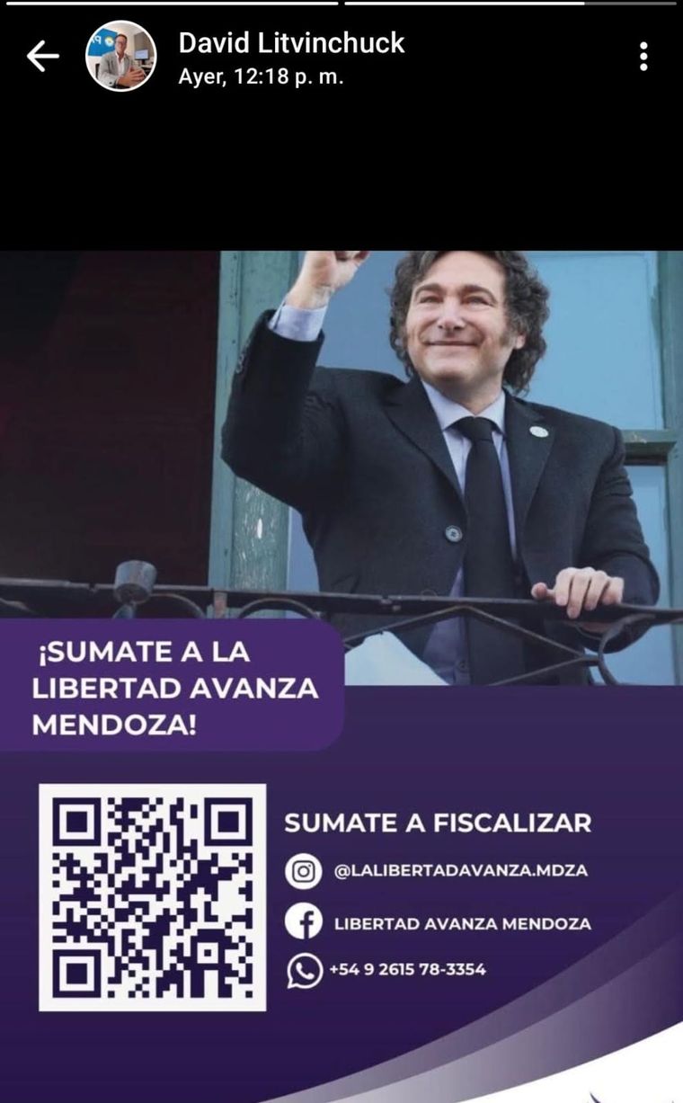 El director del PAMI, David Litvinchuk, y secretario de La Libertad Avanza, es decir la segunda autoridad del partido en Mendoza, publicó en sus redes sociales que buscan fiscales.
