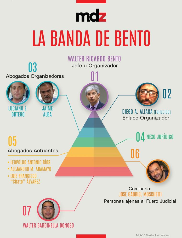 Bento era juez federal con competencia electoral y pudo ejecutar una red de corrupción expandida, conocida y obscena delante de todos. Así lo determinó la justicia: fue una organización criminal que funcionó al menos desde 2007, con base en el juzgado federal 1 de Mendoza. Como dijo el Tribunal, fue una asociación ilícita “de carácter permanente y estructurada cuya finalidad era la obtención de beneficios económicos ilegales mediante la venta de decisiones judiciales". En el mundo Bento se mezclaban el glamour ABC1, con el submundo del delito. El contacto con el círculo rojo y la política, con personajes grises que se movían entre la delincuencia, la delación y los negocios sucios.