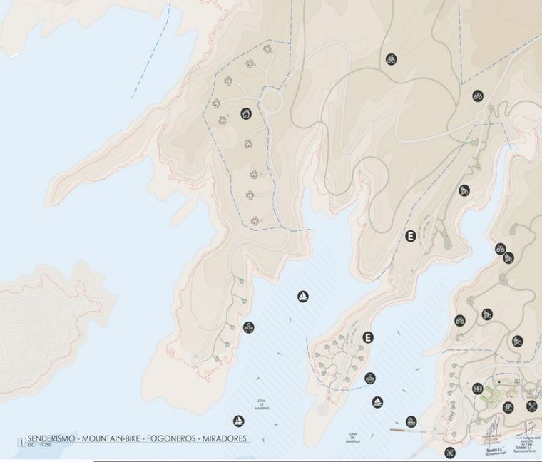 “La primera etapa va a ser la apertura de caminos para poder acceder al proyecto y va a incluir un sector más social donde se va a construir el muelle, las amarras, el sector de baños, la guardería de kayaks. Y vamos a construir la conexión con la montaña en la parte de senderismo y de el bike park para la práctica de mountain bike y la parte de fogoneros. Esa primera etapa requiere una inversión de 750 mil dólares”, manifestó.