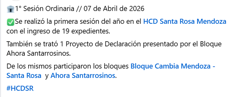 Santa Rosa es un pueblo chico donde la gente conoce a sus representantes. De acuerdo a lo que contó Quiroga a este diario, "la población pedía que inicien las sesiones". En mayo, la composición del Concejo Cambia: habrá cinco ediles peronistas y la misma cantidad de opositores, lo que dará más margen a Destéfanis para aprobar sus resoluciones.