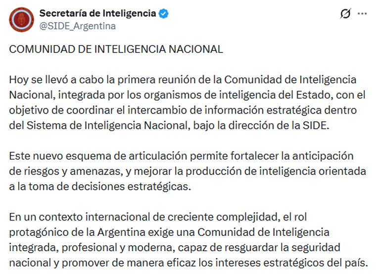 La Secretaría de Inteligencia de Estado convocó a todos los organismos del sistema para institucionalizar canales de comunicación y transparentar el funcionamiento del área en medio de la controversia por el DNU que modificó la Ley de Inteligencia.