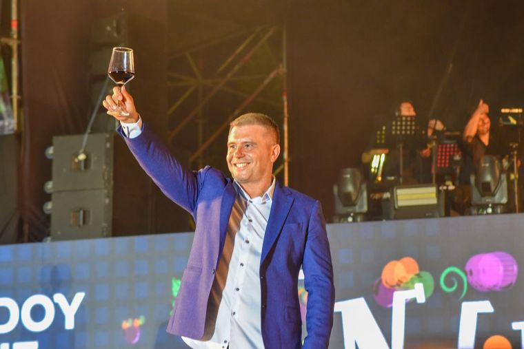 Diego Costarelli subió al escenario para protagonizar la Bendición de los Frutos de fiesta departamental. Hubo discurso por parte de los autoridades eclesiásticas y luego el tradicional golpe de reja del intentendente, acompañado solo por las reinas. Luego alzó la copa llena para brindar, pero en el palco de autoridades brillaban las ausencias. Las copas que se levantaron en ese caso fueron las autoridades de su municipio.