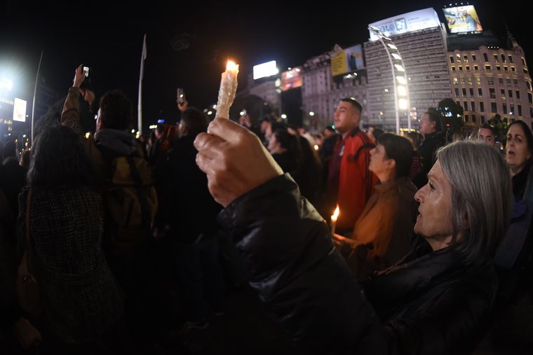 Profesionales del Hospital Garrahan marcharon al Obelisco en una “Noche de velas” para volver a exigir la recomposición salarial.