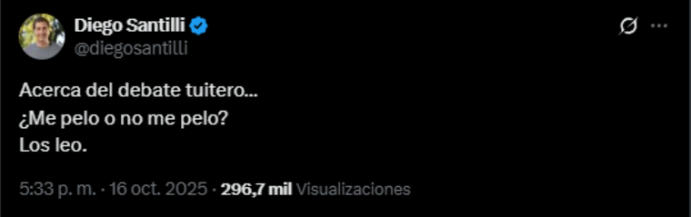 “Acerca del debate tuitero… ¿Me pelo o no me pelo? Los leo”, escribió Santilli en X, generando una ola de respuestas desde distintos sectores del Gobierno, que se sumaron a la humorada.