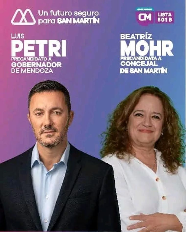 Es concejal por San Martín. Se llama Beatriz Mohr, milita a Luis Petri hace más de 15 años, es docente y supervisora jubilada y vice radical.