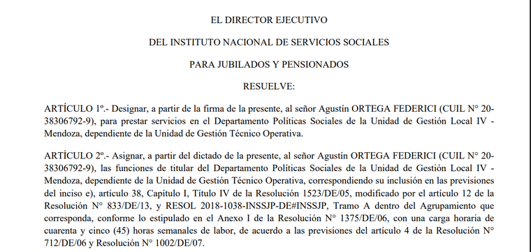 Otras resoluciones firmadas en Buenos Aires, con el impulso de Correa Llano, son reemplazos en agencias, es decir en sedes locales. Políticamente implica más poder para el presidente de La Libertad Avanza quien cada vez tiene más gente que le responde dentro del organismo que se encarga de las prestaciones médicas de las personas jubilados.