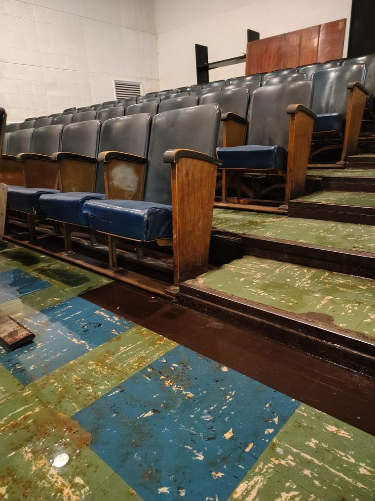 También asegura el escrito que el lugar está totalmente mojado con goteras constantes sobre las butacas.
