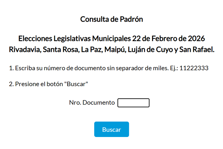 Para saber dónde se vota hay que visitar la página https://padron.mendoza.gov.ar/eleccion260222padron/hpad0001.