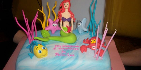Para comer hubo sandwichs, empanadas, papitas, chicitos, y muchas cosas ricas para grandes y chicos. El momento dulce llegó con la torta de cumpleaños con la Sirenita y sus amigos del fondo del mar. Feli, muy sonriente disfrutó e hizo muecas para la cámara mientras todos le cantaban el feliz cumpleaños.