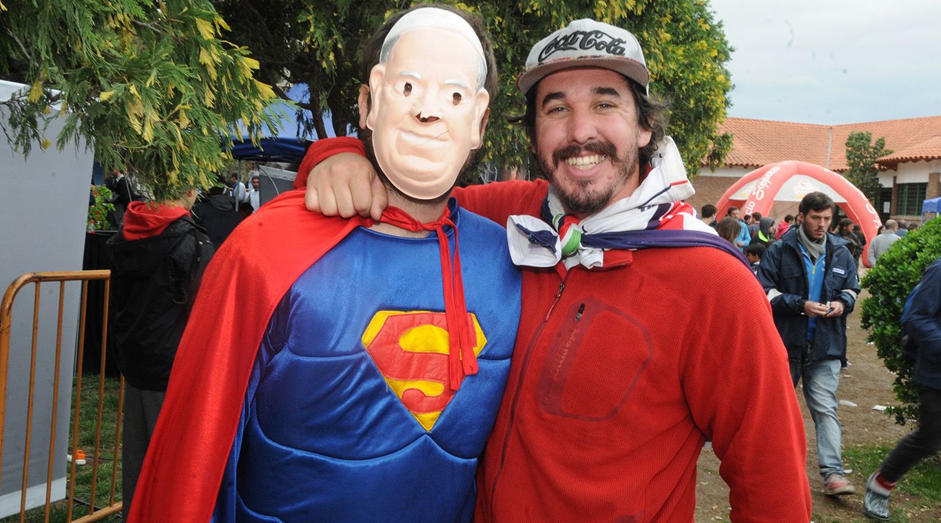 Hinchada de Marista sorprendió con originales disfraces, algunos eligieron súper héroes y otros se identificaron con las caretas del Papa Francisco. Por supuesto, las banderas adornaron la platea y tiñeron de color El Bermejo.