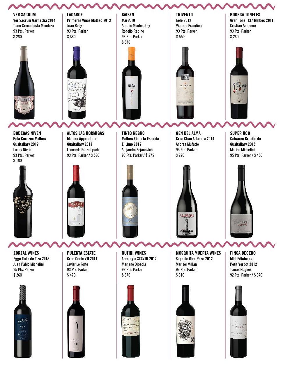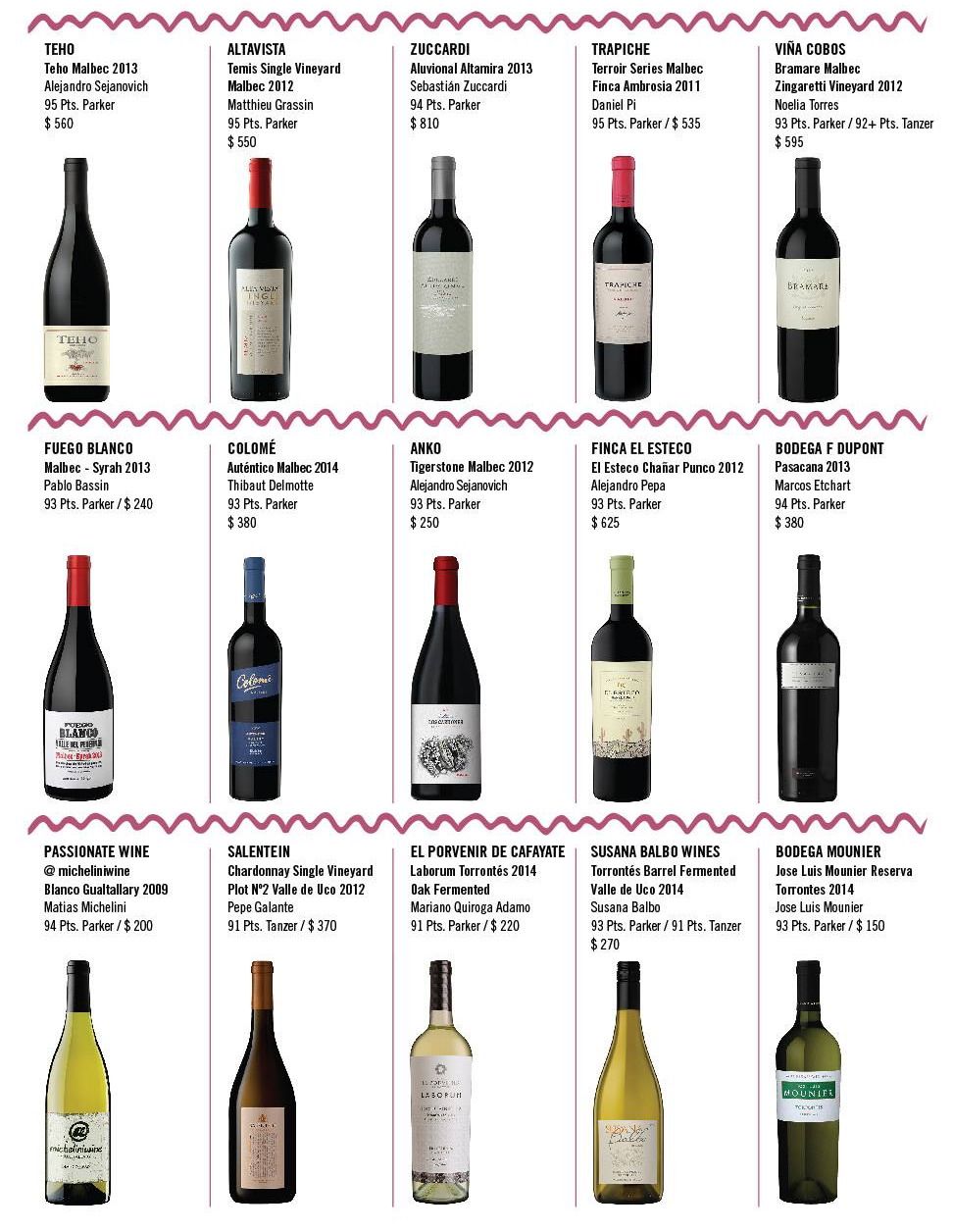 Quienes participaron de la experiencia degustaron los mejores 30 vinos argentinos, de las bodegas que recibieron puntajes iguales o mayores a 93 en el reporte 2015 de Robert Parker, o las que obtuvieron 92 puntos o más, en el último reporte para Argentina de Stephen Tanzer.