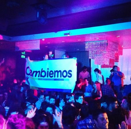 "Doce en punto, aunque las pistas todavía no se encontraban repletas, arrancó el tema que había sonado una y otra vez más temprano en los salones del Pabellón 2 de Costa Salguero en la espera de los resultados. "Estoy con vos, estoy con vos": todos se unieron en el canto, desde el VIP y el llano. Corrían la cerveza, el fernet, el champagne y los abrazos. Los presentes se mostraban exultantes. Bailaban al son de los reggaetones de moda y volvían a abrazarse. El militante por la diversidad Pedro Robledo entró enérgico, liderando una fila de cinco jóvenes hacia la barra del fondo. En su cabeza, una gorra de Cambiemos", cuenta Brenda Struminger, periodista de La Nación.