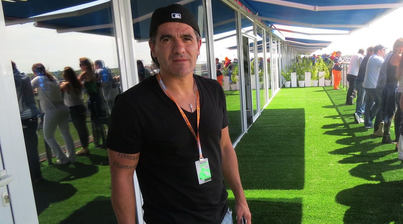 Por otro lado, Ariel “Burrito” Ortega también se instaló en la terraza para ver a sus pilotos favoritos y se animó a posar para MDZ.