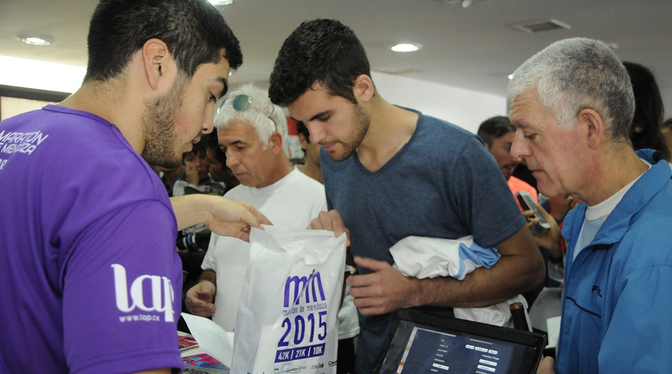 Cerca de las 9,30 de la mañana -hoy viernes 1 de mayo- los corredores que participarán de la edición número 16 de la Maratón Internacional Mendoza (MIM) comenzaron a llegar al Salón Blanco del Museo del Estadio Malvinas Argentinas para retirar sus kits. Hasta las 20 horas hay tiempo de buscar: la remera, el número, un vino de regalo entre otros objetos que conforman el kit.