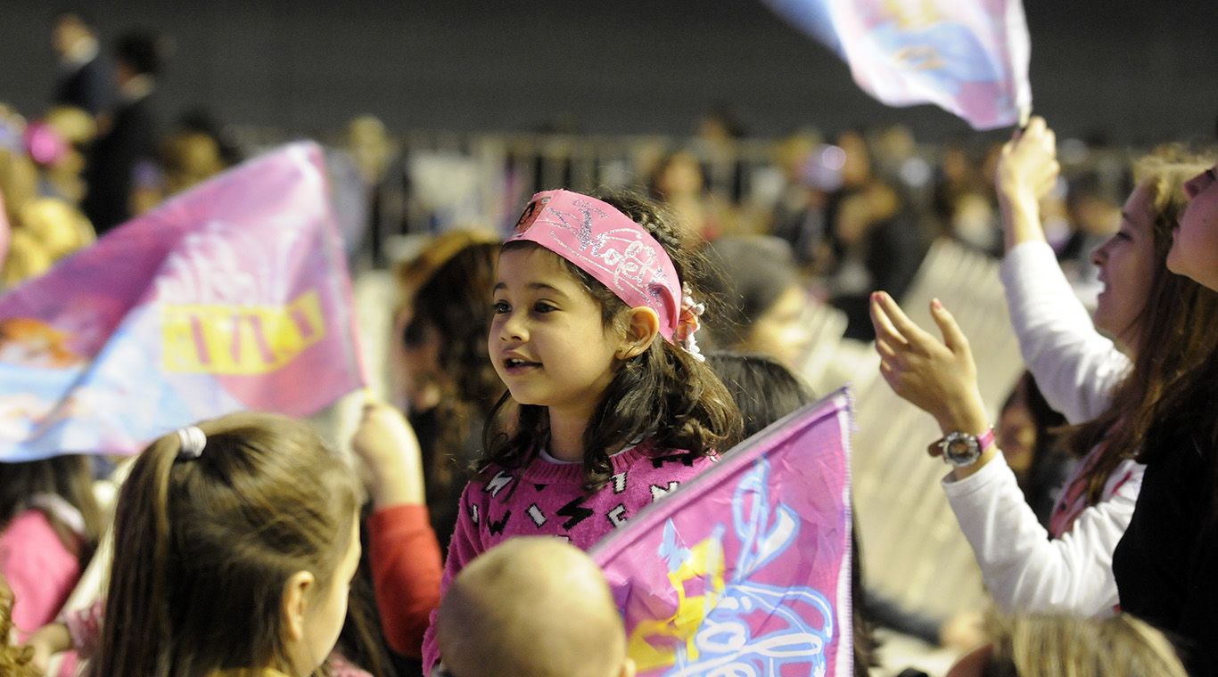 Martina “Tini” Stoessel llenó de magia en lugar con sus emblemáticos colores. Las más chiquitas eligieron banderines, pancartas, gorritas y disfraces para ovacionar a Violetta durante el show, mientras que las mamás no dejaron de sacar fotos y hacer videos con sus hijas disfrutando de los hits infantiles.