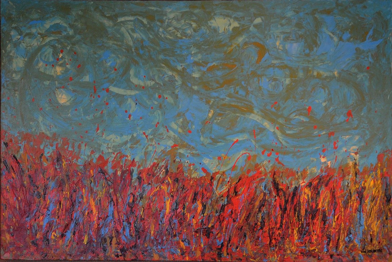 Marcelo Von Der Heyde, aborda el misterio y el hermetismo. Sus pinceladas no tienen tema primigenio. Ellas hacen camino sobre el soporte y se transforman mágicamente. Aparecen los horizontes , los cielos y las vegetaciones tormentosas a veces diáfanas. Trabaja el azar como un alquimista medieval y transforma en una resplandeciente sorpresa.