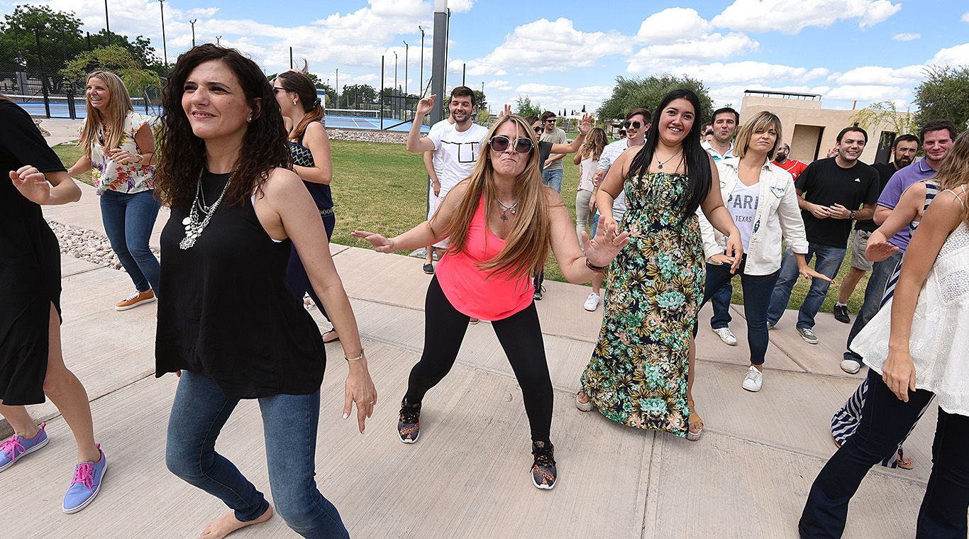 A la hora de bailar zumba, hay que decir que Marcela Terranova fue la más entusiasmada y se animó a liderar micrófono en mano las coreografías. Párrafo aparte para Alejandra Cicutto, de administración y recepción de MDZ, que intentando hacer la 'viborita' se pegó un porrazo antológico.