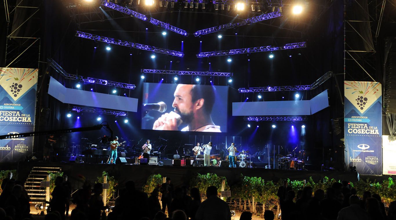 Aunque amenazó la lluvia durante la noche del miércoles, este viñedo de Malbec fue el escenario del concierto “ Clásicos argentinos ”, con dos invitados de lujo: Ricardo Mollo y Jaime Torres junto a la Orquesta Filarmónica de Mendoza, y otros artistas locales.