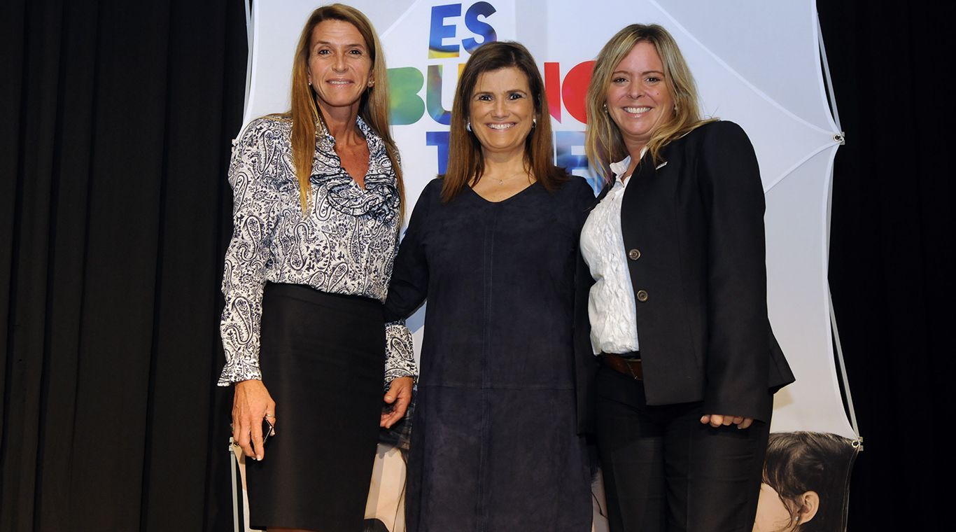 Pilar Sordo agasajada por las mujeres de OSDE: Viviana Arnera y Julieta Duchini.