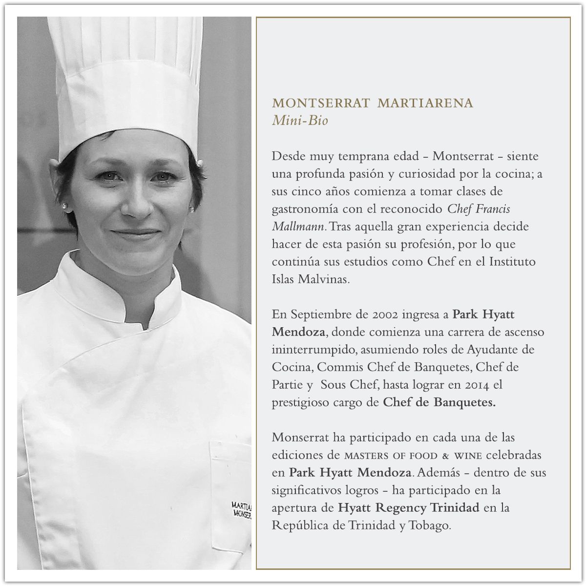 Acompañarán a los diferentes varietales una novedosa selección de tapas, ideas personalmente por la Chef de Banquetes de Park Hyatt Mendoza: Montserrat Martiarena.