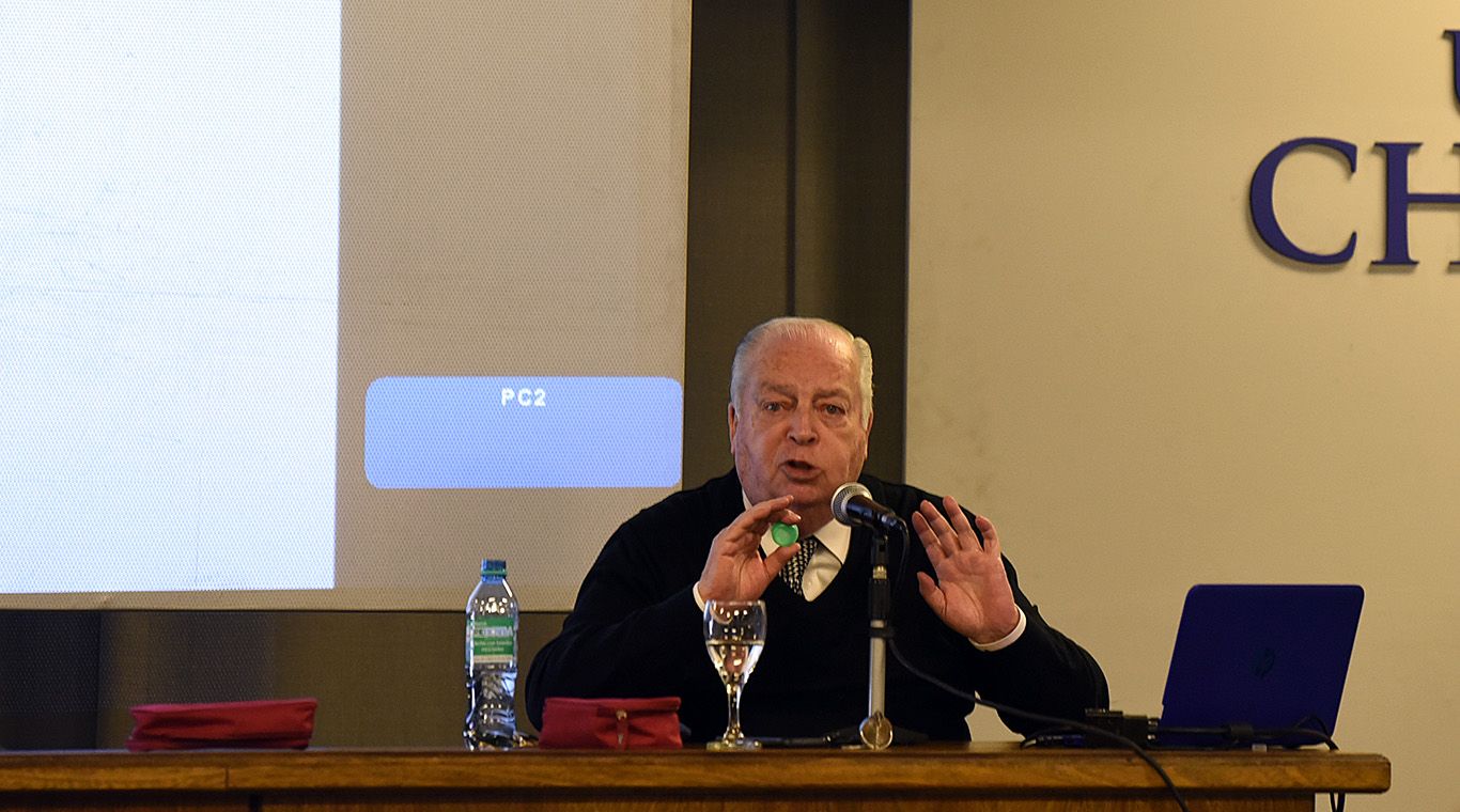 El Prof. Adolfo Alvarado Velloso, director de la Maestría, durante la clase introductoria.