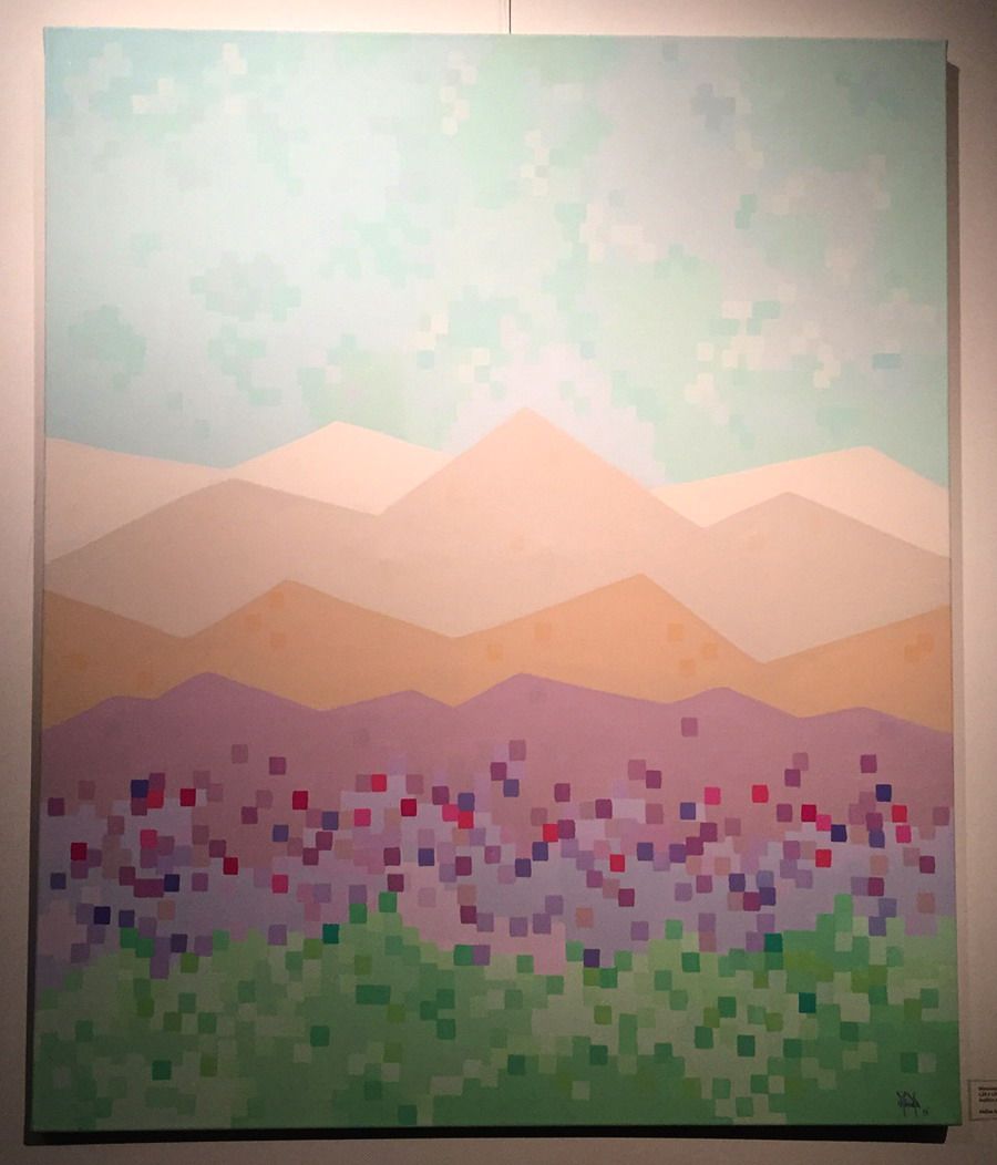 "Pixels es una idea que fue evolucionando en mí. Lo comencé como algo explosivo, como una situación en la que estalló el color, y luego me fui ordenando y dándole más técnica. Todo fue mutando hasta llegar a 'pixels gardens' y 'pixel mountain', que es lo que estoy presentando en esta muestra", nos cuenta Melisa Millán.
