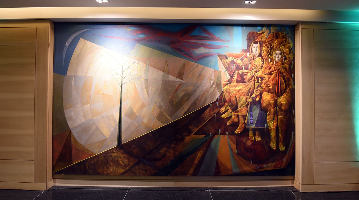 Al ingresar al lobby del edificio nos envuelve una obra de arte magistral del artista mendocinos Osvaldo Chiavazza. Y tal como él dice: "Nos invita a pasar".