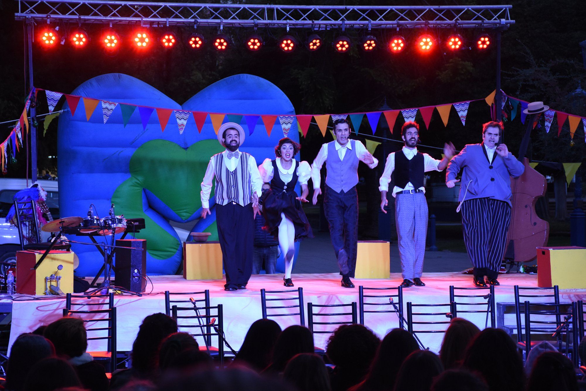 Posteriormente, los invitados se sentaron en las butacas y los maestros Ernesto El Flaco Suárez y Gladys Ravalle fueron los encargados de abrir oficialmente la fiesta, dando paso a la obra "Eran 5 hermanos y ella no era muy santa" de la Comedia Cordobesa.