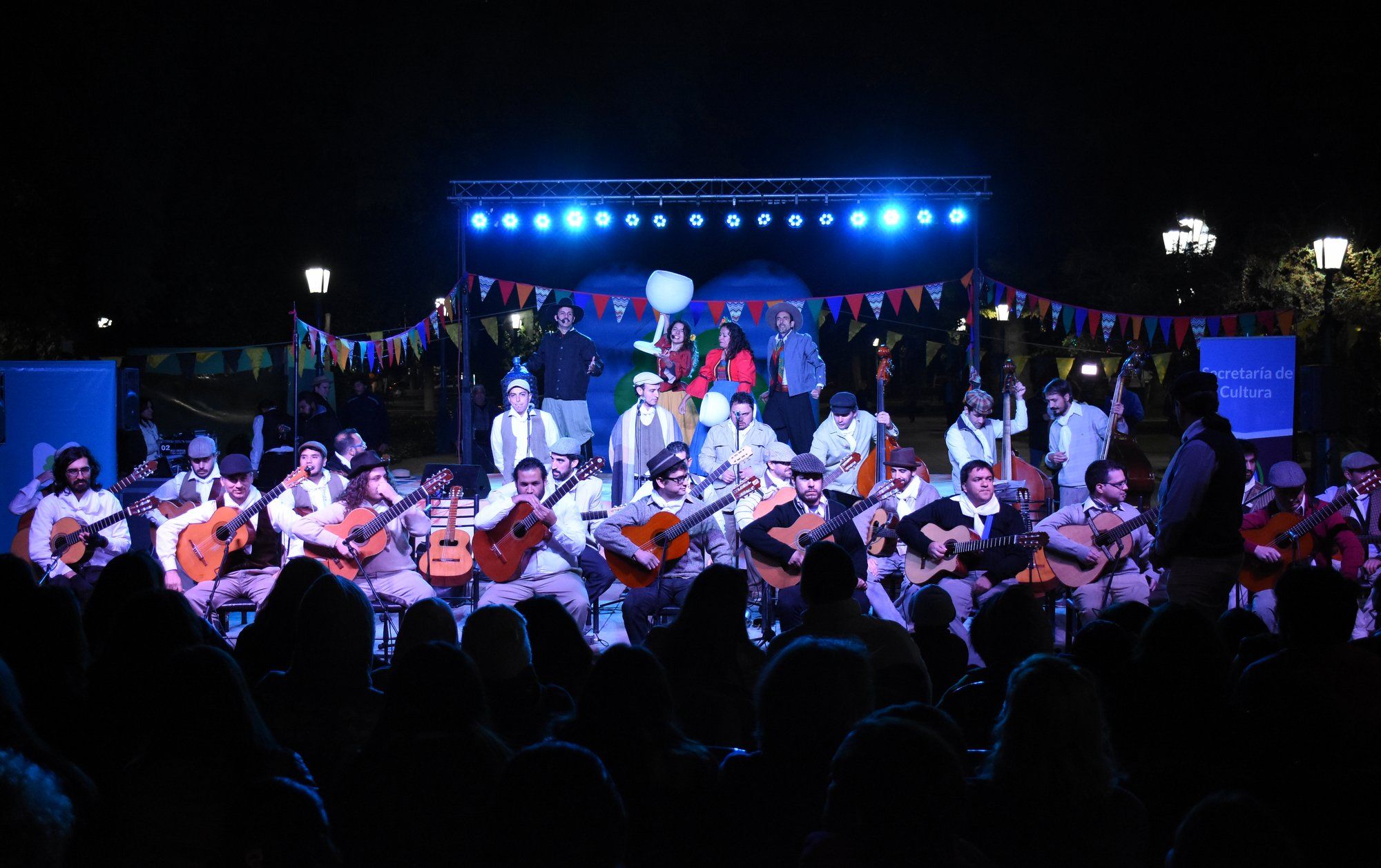 Una vez en la sala mayor, hubo una intervención en el hall del teatro a cargo de cuatro coloridos personajes cuyanos, encarnados por los actores Daniel Encinas, Gabriela Garro, María Pereyra y Diego Flores.