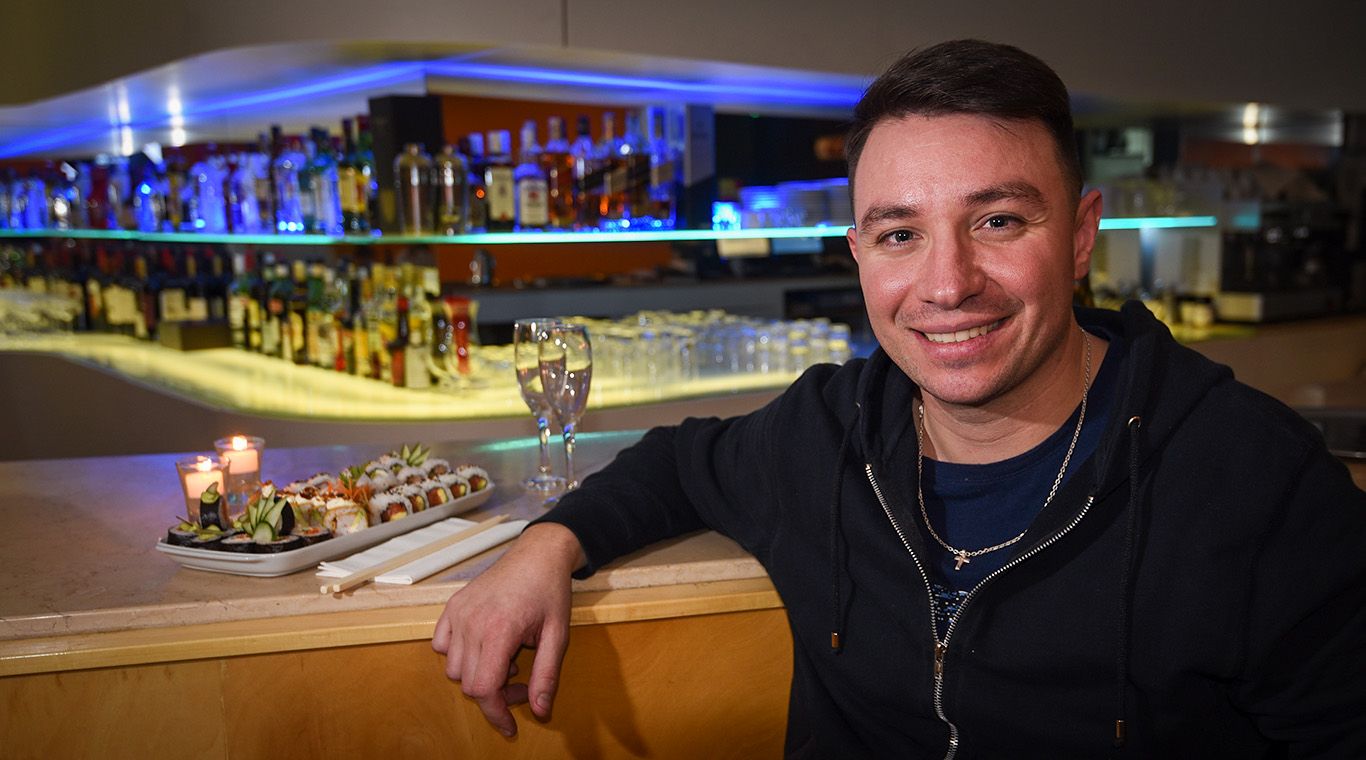 Gastronomía singular. "Nuestro sushiman viene de Usuhaía, más precisamente del Cerro Castor", contó Leonardo Encina y presentó a sushiman Rodrigo Scaffidi.