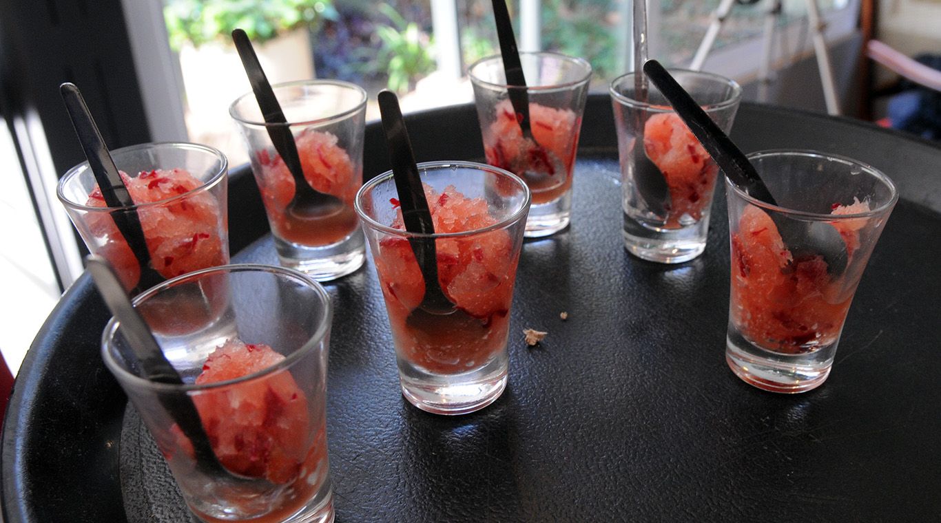 Acorde al menú presentado, entre los platos dulces se destacaron la granita de pomelo rosado y pétalos de rosas, de Francesco Ristorante; la crema de oliva, zapallo en almíbar, figura de chocolate, de Ana Paula Gutiérrez y el queso criollo y quinotos en almíbar, de Ceibo Restaurante.