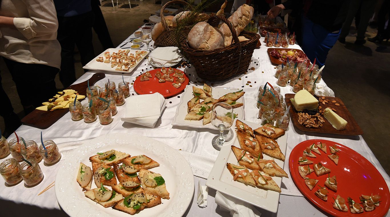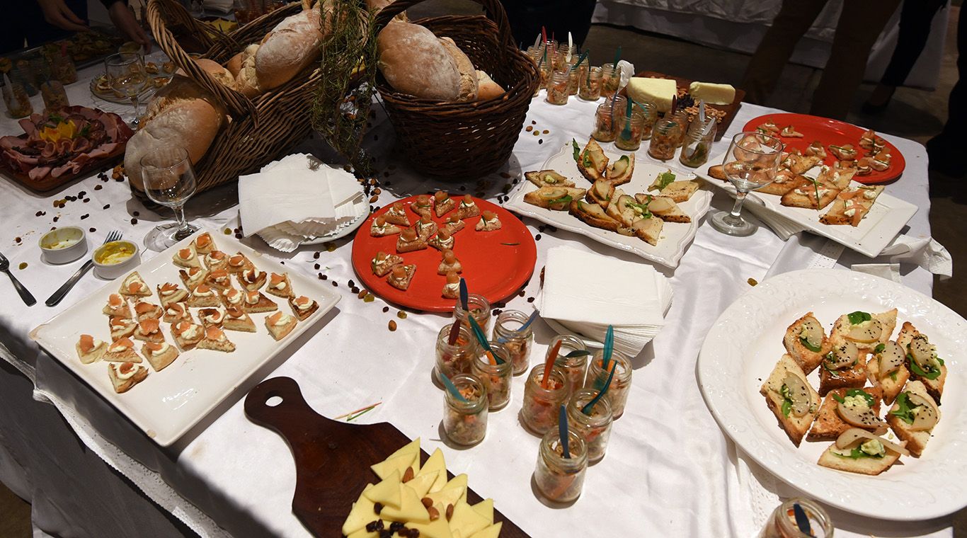 Por su puesto, para celebrar los presentes degustaron un sinfín de exquisiteces. Hubo mesa de quesos y fiambres, paella, asado, pulpo, corvina, ensaladas, etc.