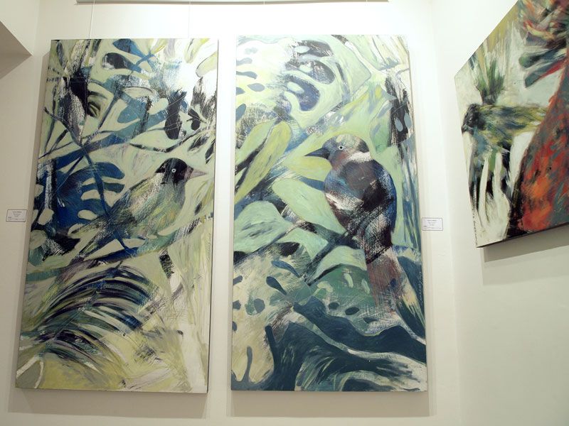 Cecilia no está dando un solo paso en falso en sus últimas series. Su pintura y sus pájaros están llenos de colores justos, elegantes, cargados de capas y materiales, con un inmenso trabajo y una factura impecable.