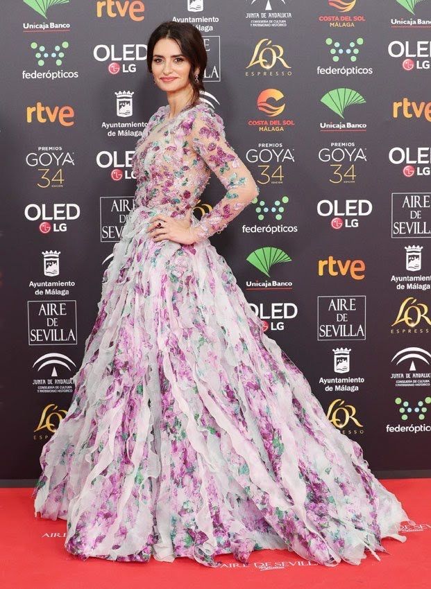 Penélope Cruz, por Ralph & Russo, de tul en rosa, lila y verde.