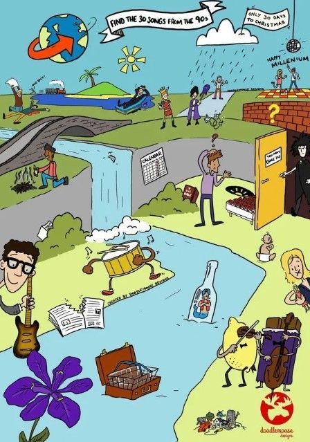 Viral: hay que encontrar en el dibujo 30 canciones de los años 90