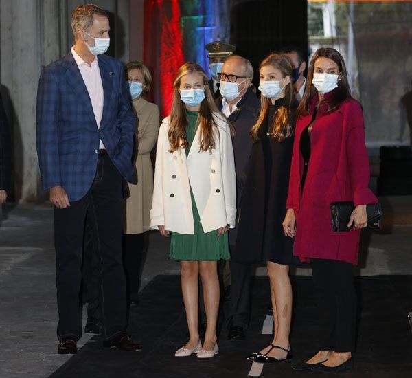 Tras el primer acto en el marco de los Premios Princesa de Asturias 2020, con la visita de los Reyes y sus hijas, la princesa Leonor y la infanta Sofía reflejaban cierta evolución de estilo, con prendas con guiños a las tendencias, como el jersey de mangas abullonadas que llevó la Princesa o la blusa con lazada de la Infanta, en este acto sus apuestas han sido muy diferentes pero han logrado una vez más transformar sus básicos.