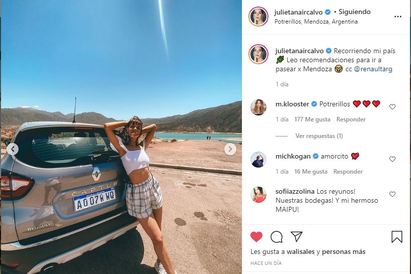 Julieta es otra de las famosas que elige como destino Mendoza para vacacionar. De la misma forma lo hicieron: Cande Tinelli, Coti Sorokin, Nicole Neumann, Marley y Lizzy Tagliani. ¿Quién será el próximo?