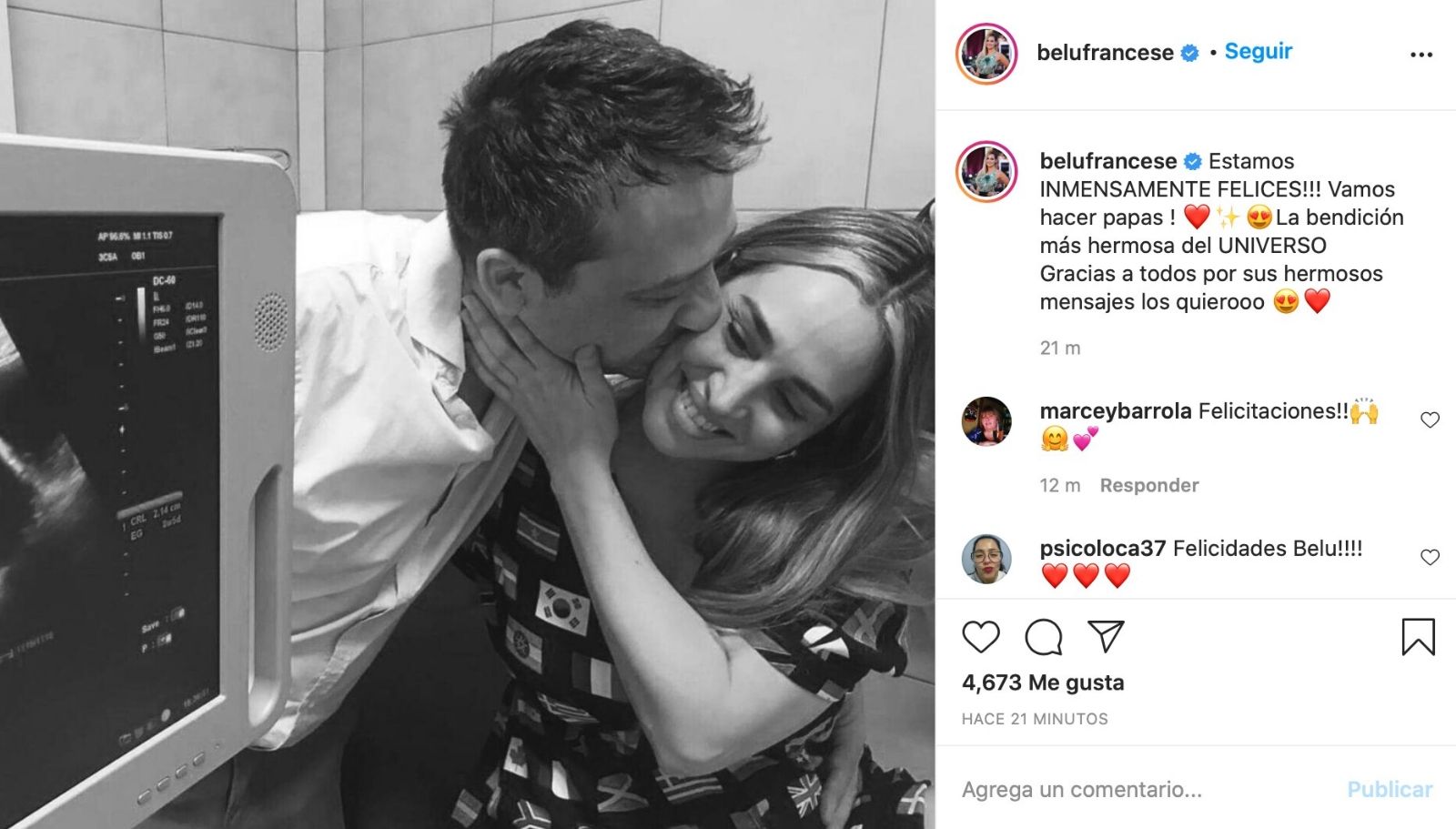 No fue casualidad, que Belén esta mañana hizo un importante anuncio, horas antes de casarse. “Estamos INMENSAMENTE FELICES!!! Vamos hacer papas! La bendición más hermosa del UNIVERSO Gracias a todos por sus hermosos mensajes los quiero” (textual), anunció en su Instagram con una tierna foto en blanco y negro.