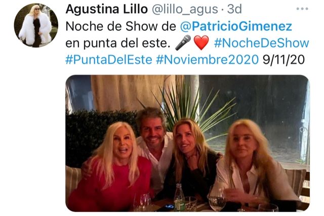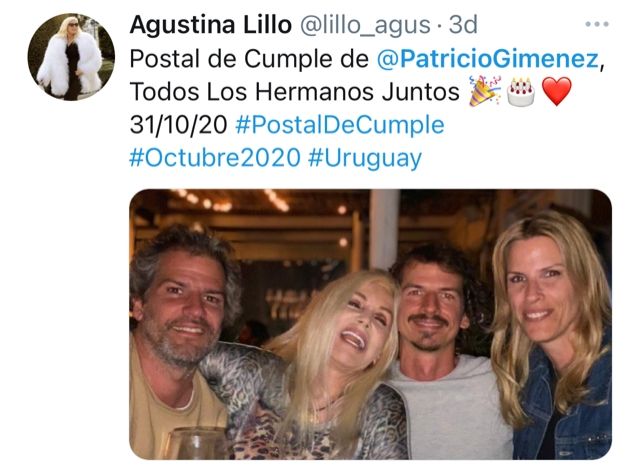 Lo cierto es que ambos hermanos de Susana, Patricio y Carolina, cumplieron años y en las redes sociales se manifestaron los festejos. El posteo del cumple de Carolina fue absolutamente familiar, como se ve en la celebración plasmada en video en la cuenta de Twitter de MDZ Sociales. Por otro lado, para celebrar con Patricio hubo salida nocturna.