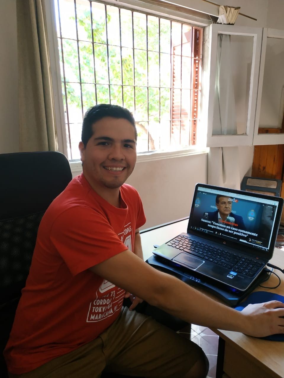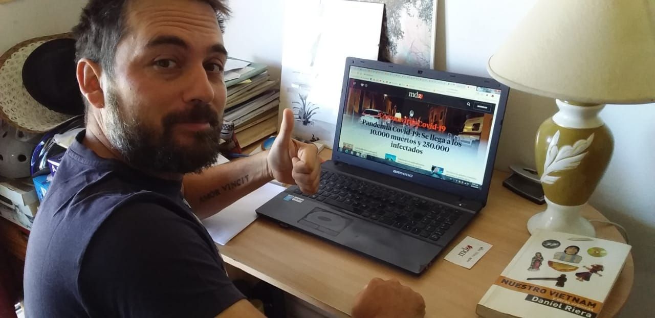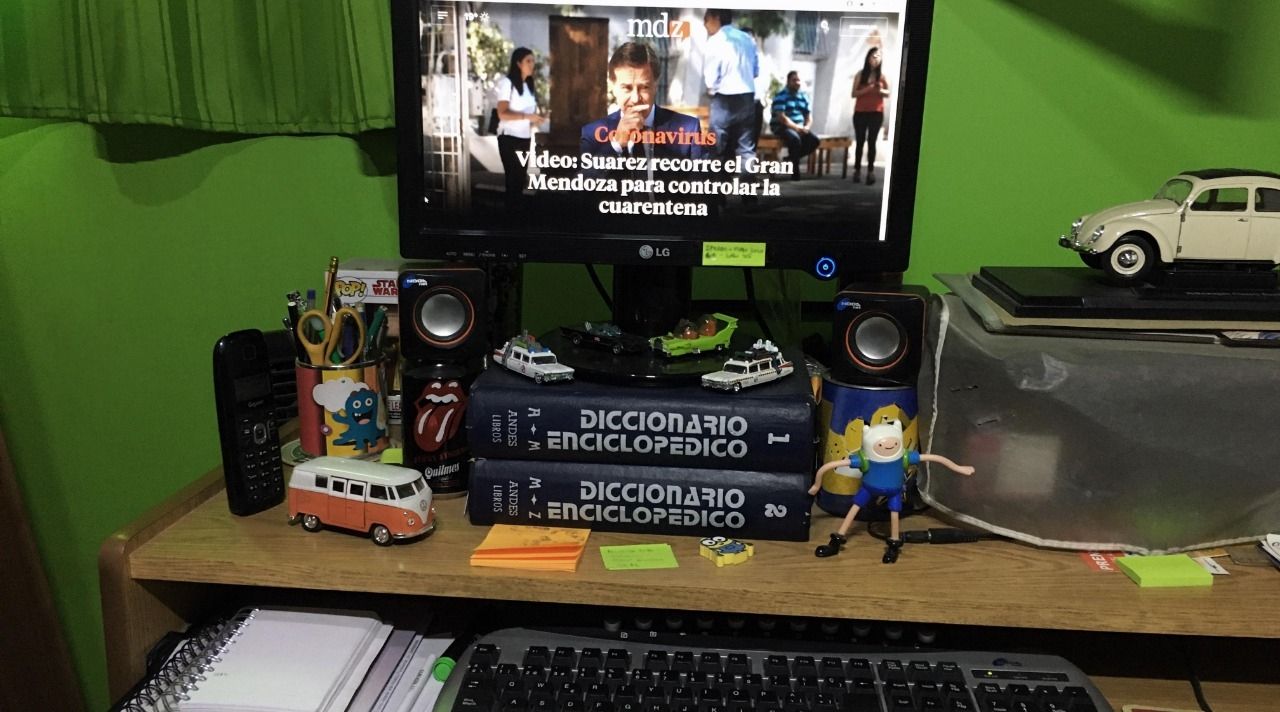 "¡Home office desde el departamento de 1 x 1! Un día de laburo en mi ámbito privado. Muy temprano compartiendo el minuto a minuto con mis compañeros del diario. Salí por teléfono en MDZ Radio y ahora, produciendo “El Permitido”, el programa de la tarde. ¡Hoy, a escribir y a escribir! Reflejaremos el estado de situación de la cuarentena en la provincia y hablamos con todos los referentes -de seguridad, de la política, empresarios supermercadistas, y más-. ¿Mi consejo? Informate siempre por medios de comunicación reconocidos, y por datos oficiales. ¡Ojo con los audios virales, con los posteos y las redes sociales, que a veces intranquilizan y confunden con falsedades!" (Federico Croce, Editor de Sociales - Sociedad).