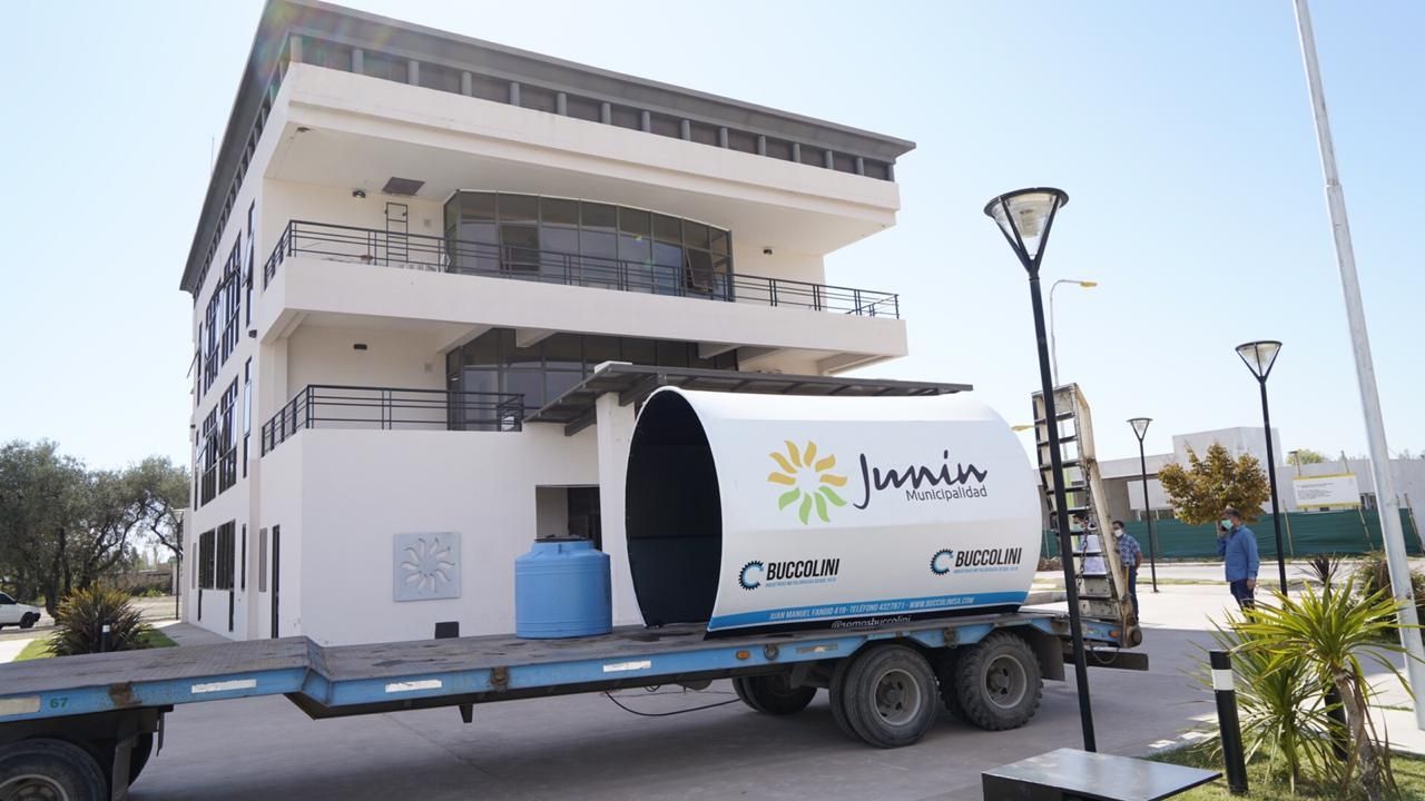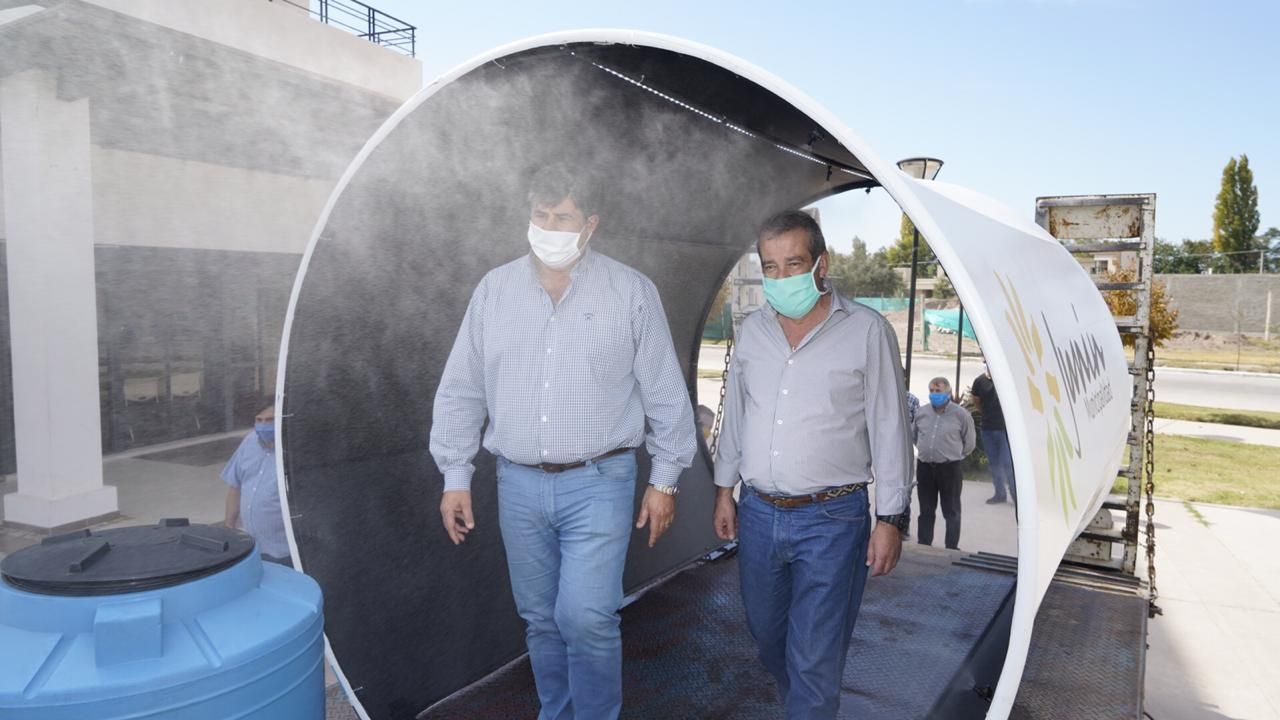 Tras la aparición del COVID-19, el Dr. Juan Carlos Videla -empresario del Este de la provincia- investigó acerca de los diferentes métodos de desinfección en espacios públicos y a través de su empresa especializada en metalmecánica, fabricó túneles y los donó a los cinco municipios: Rivadavia, Junín, San Martín, La Paz, Santa Rosa.